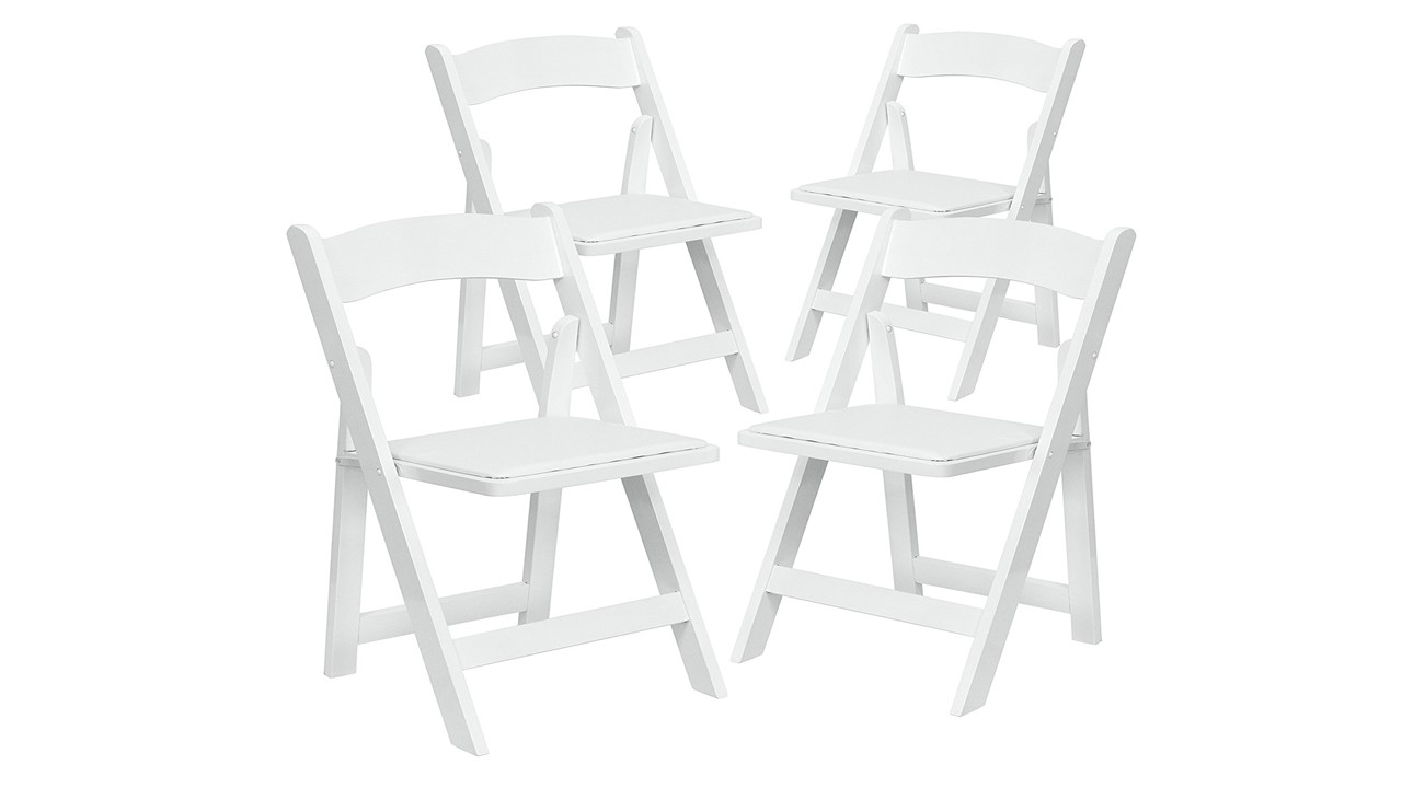White Resin Folding Chairs - also available in black, natural, mahogany and more.